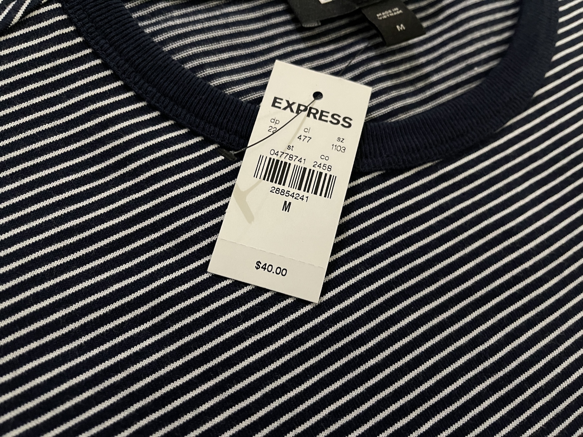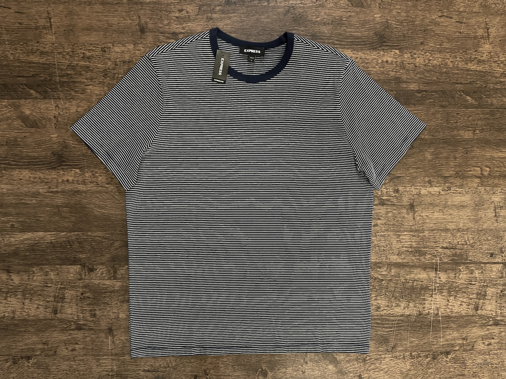 Express Striped T-Shirt – Navy/White (Size Medium)